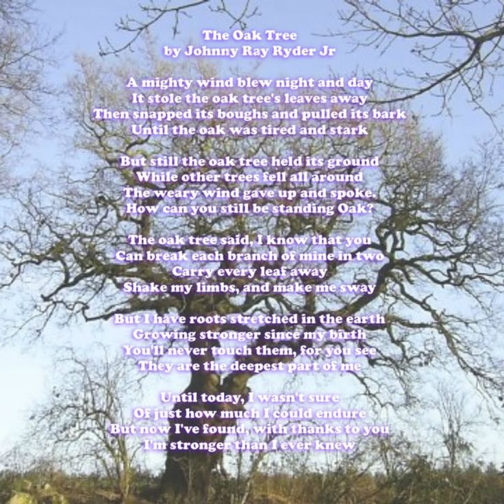 A mighty wind blew night and day. Then snapped its boughs and pulled its bark. The oak tree poem meaning Sunday April 10 2022 Edit.